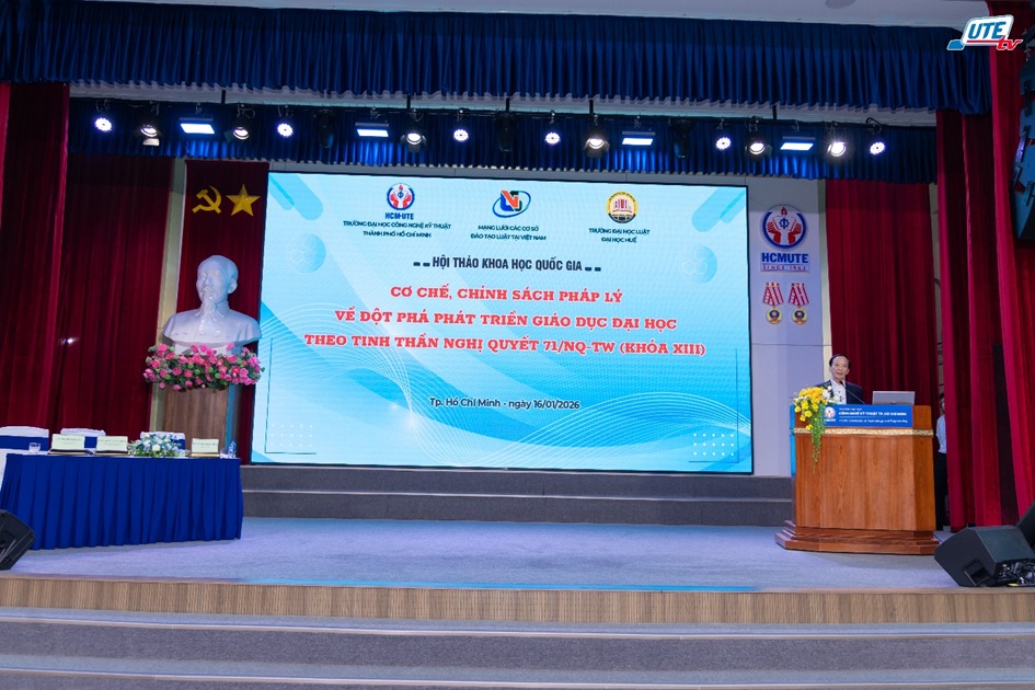 Ngày 16/01/2026, tại Trường Đại học Sư phạm Kỹ thuật TP. Hồ Chí Minh, Mạng lưới các cơ sở đào tạo Luật tại Việt Nam phối hợp cùng Trường Đại học Luật – Đại học Huế và Trường Đại học Sư phạm Kỹ thuật TP. Hồ Chí Minh đã tổ chức Hội thảo Khoa học Quốc gia với chủ đề: “Cơ chế, chính sách pháp lý về đột phá phát triển giáo dục đại học theo tinh thần Nghị quyết 71-NQ/TW (Khóa XIII)”.