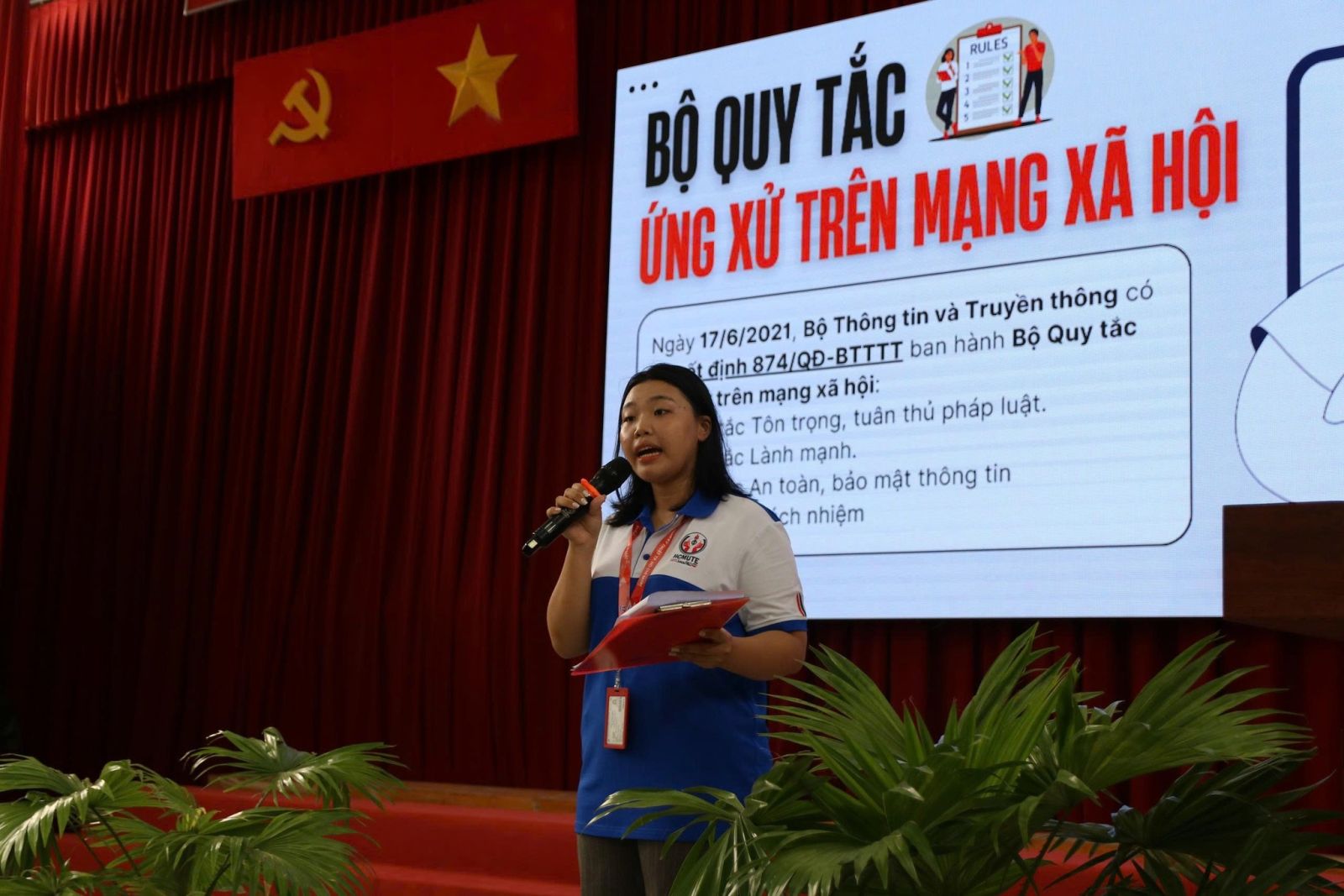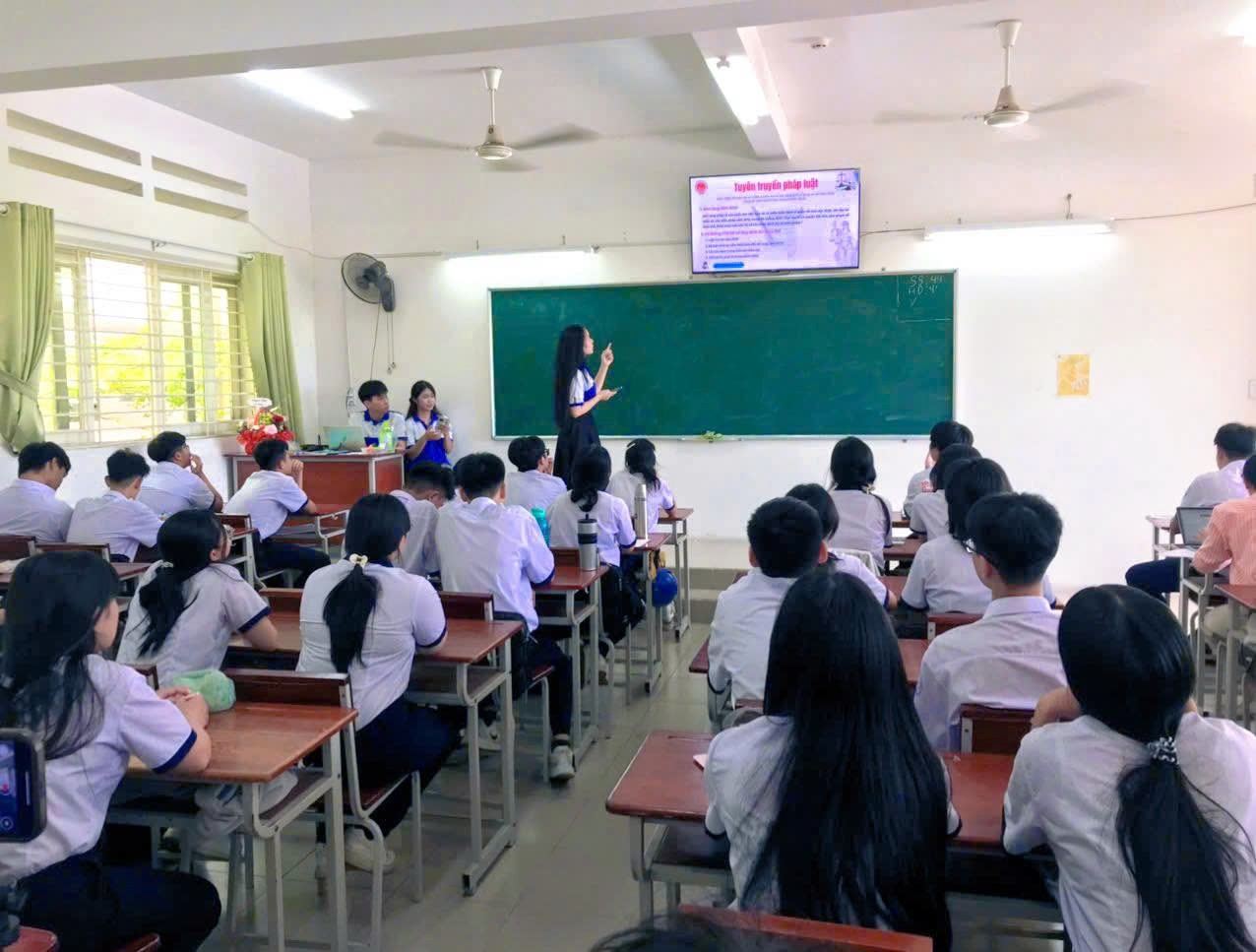 Các nội dung tuyên truyền được lựa chọn bám sát thực tiễn đời sống học sinh, tập trung vào những vấn đề pháp lý thiết yếu như an ninh mạng, bảo vệ môi trường và phòng chống quấy rối trong môi trường học đường. Thông qua việc tiếp cận các quy định pháp luật liên quan, chương trình không chỉ cung cấp kiến thức mà còn giúp học sinh hình thành ý thức tôn trọng pháp luật, nhận diện hành vi vi phạm và nâng cao khả năng tự bảo vệ bản thân trước các rủi ro trong đời sống.